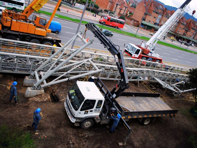 Montaje estructura metálica puente peatonal Autopista Norte Calle 187 – Bogotá